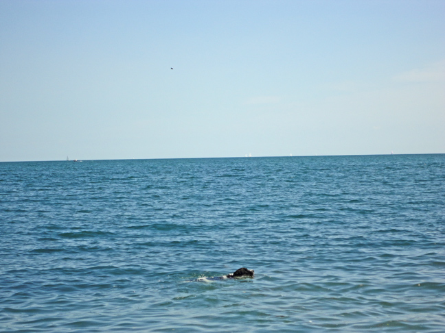 Memphis likes to swim out after a red ball. She’ll go after a tennis ball or a stick but she really likes the rubber red balls. You know, the expensive kind. Memphis will fetch a red-ball from the lake over and over and over again. The trick is to figure out when she’s finally tuckered out one throw before she shows you by watching the expensive red ball being hurled in the lake and then lying down in the sand for a wee rest.