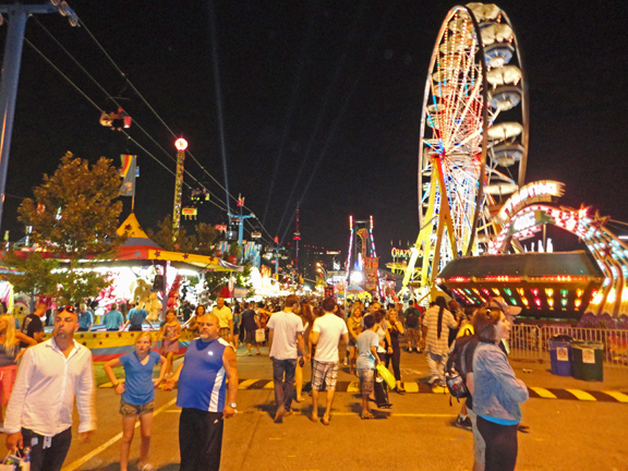 We went to the CNE (that’s the Canadian National Exhibition, or the “Ex” for those not from around here) with the intention of seeing the Don McLean show at the Bandshell. Unfortunately, we didn’t like the show much and abandoned ship early, well before he got to his monster hits. Instead, we wandered through the midway. The Paul James Band was playing in one of the beer tents and we stopped to listen to a couple tunes. Some readers may know that these guys played at our wedding in 2001. This was back when Brian Kipping was still alive and playing bass for the band.
