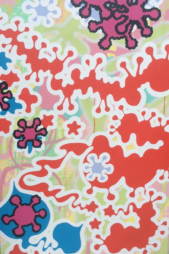 FLIP 3 1997 Acrylic and spray enamel. From a series of 20 unique canvases. 70″H x 48″W (additional FLIP works are avail- not all are shown on this site. inquire if interested in multiples from this series.)