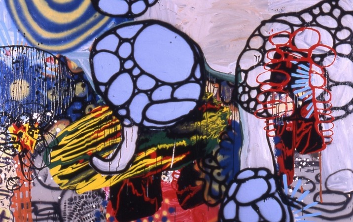 FLIP 2 1997 Acrylic and spray enamel on canvas. 70″H x 48″ W (Additional works from Flip series are avail. Not all are pictured on this site. If interested in multiples, please inquire.)