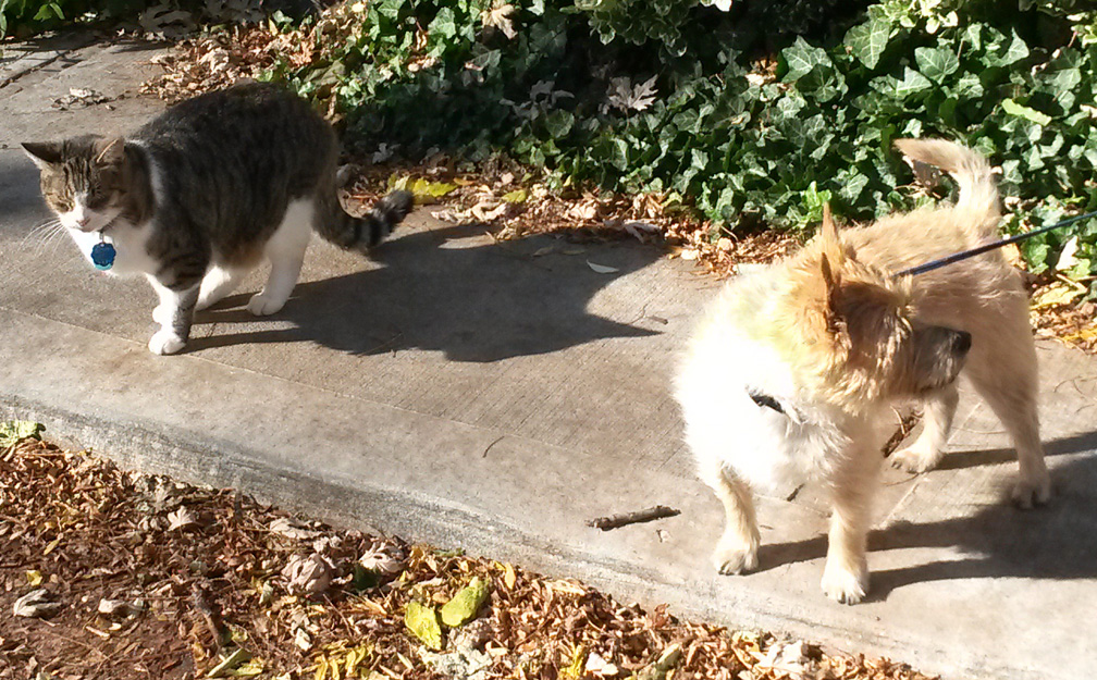 August 17, 2015 1008 × 625 The Cat who would be loved by so many The King of Cabbagetown out for a walk with A&D’s pup